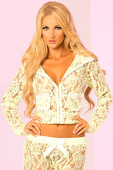 Super soft stretch-lace zip hoodie, giant lace hood with satin trim, pockets with satin trim.100% polyester- £33.99