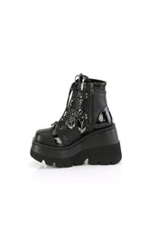3 1/2"" (89mm) Wedge Platform Ankle Bootie Featuring Multiple Studded Buckle Straps & Front Zip Closure w/ Skull Head- £102.95