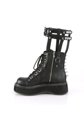 3 1/2"" (90mm) Platform Lace-Up Front Mid-Calf Boot Featuring 6 Cone-Studded Buckle Straps, Inner Side Metal Zip Closure- £127.95