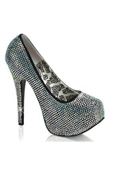 5"" (12.7cm) Heel, 3/4"" (1.9cm) Platform Ankle Strap Sandal Featuring Rhinestones Studded on the Heel and Platform Bottom- £68.95